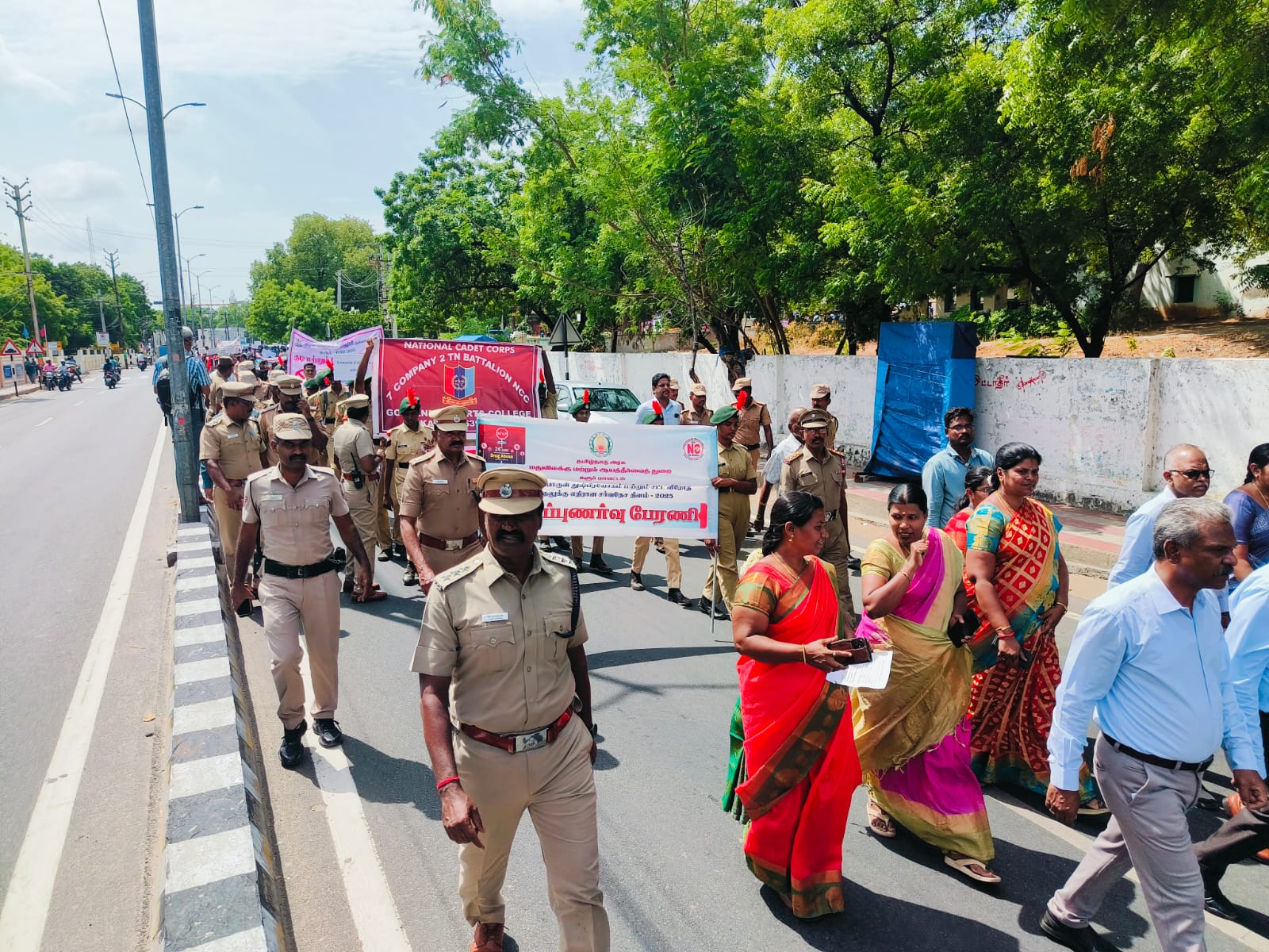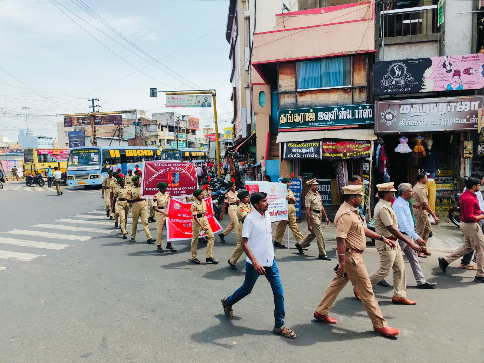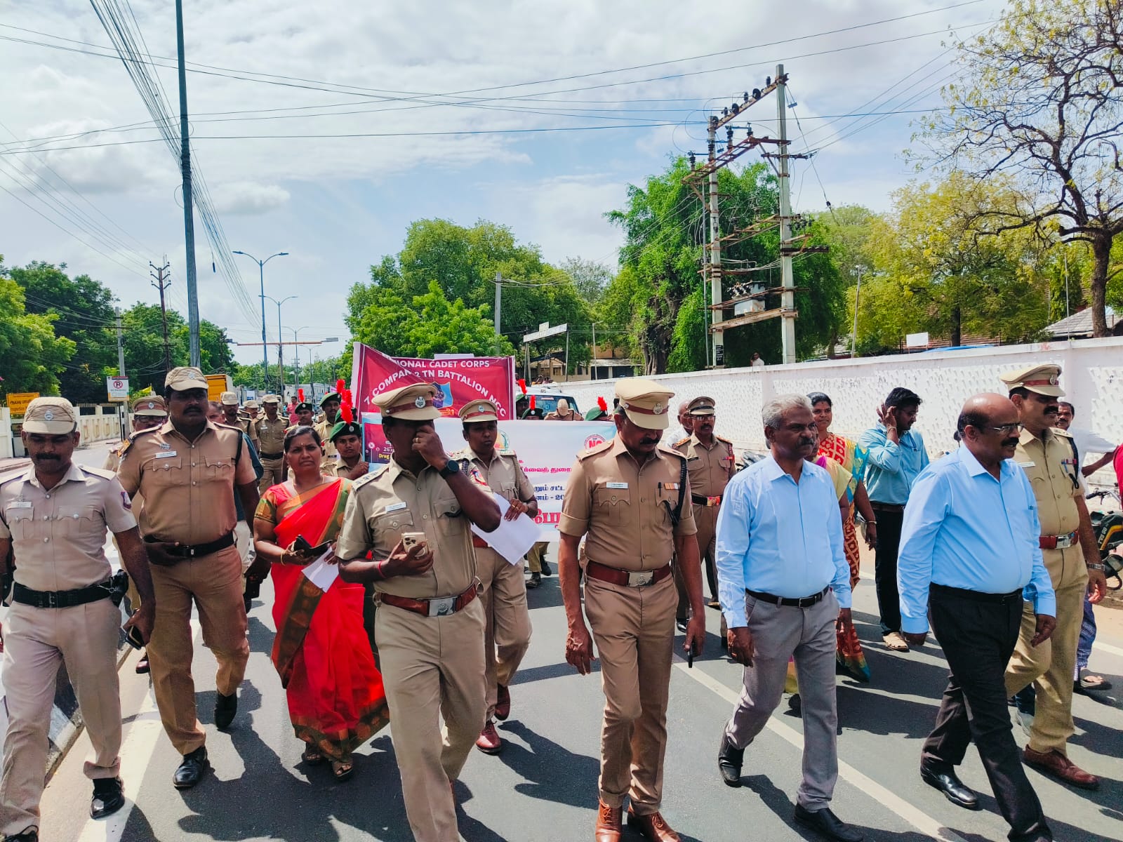 NCC cadets, NSS, and Anti Drug Club members took part in the rally. KARUR
