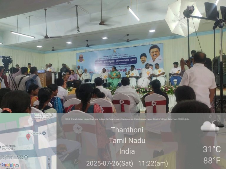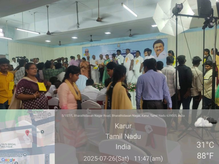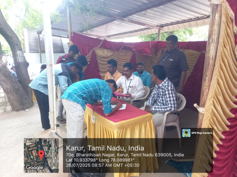 கரூர் மாவட்ட நிர்வாகம், தமிழ்நாடு மாநில ஊரக நகர்ப்புற வாழ்வாதார இயக்கம், கரூர் மாவட்ட வேலைவாய்ப்பு மற்றும் தொழில்நெறி வழிகாட்டும் மையம் இணைந்து இன்று (26-07-2025-சனிக்கிழமை) நமது அரசு கலைக் கல்லூரி (த), கரூர் -5.-ல் நடத்திய மாபெரும் தனியார்துறை வேலைவாய்ப்பு முகாமில் கரூர் மாவட்ட ஆட்சியர், கரூர் மாநகராட்சி மேயர், துணை மேயர் உள்ளிட்ட பெருமக்கள் கலந்து கொண்டு தேர்வு பெற்ற இளைஞர்களுக்கு பணி ஆணையினை வழங்கி வாழ்த்தினர்.