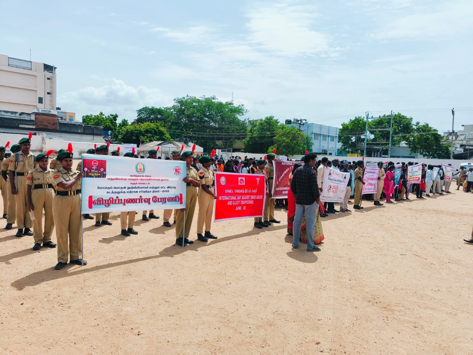 NCC cadets, NSS, and Anti Drug Club members took part in the rally. KARUR